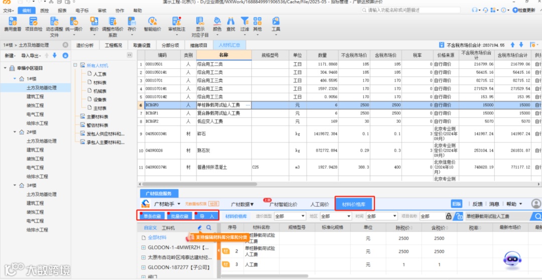 3、计价数据秒解析:已有计价文件一键解析,材料价格自动归库。