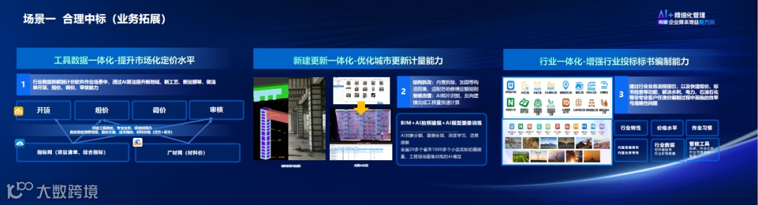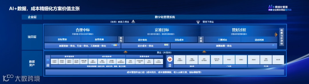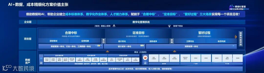 广联达结合自己的AI能力,将成本管理精细化解决方案进行全新升级,提出新的价值主张:借助数据和AI,帮助企业建立成本标准体系、数字化作业体系、人才能力体系,赋能于“合理中标”、“定准目标”、“管好过程”三大场景实现每一个项目足收!