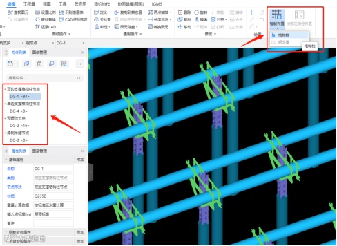 不同节点根据业务场景及构件关系,分别支持点式布置和智能布置;其中角钢牛腿还支持按指定路径布置。