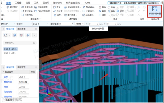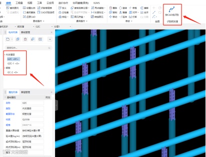 格构柱智能布置:点击“按支护桩布置”,框选支护桩或者按F3,批量选择需要布置格构柱的立柱桩,确定,即可生成格构柱;