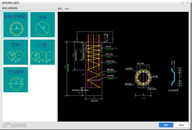 通过参数化图快速新建各个类型桩构件,满足不同类型桩建模,包含灌注桩、多轴搅拌桩、预应力管桩。