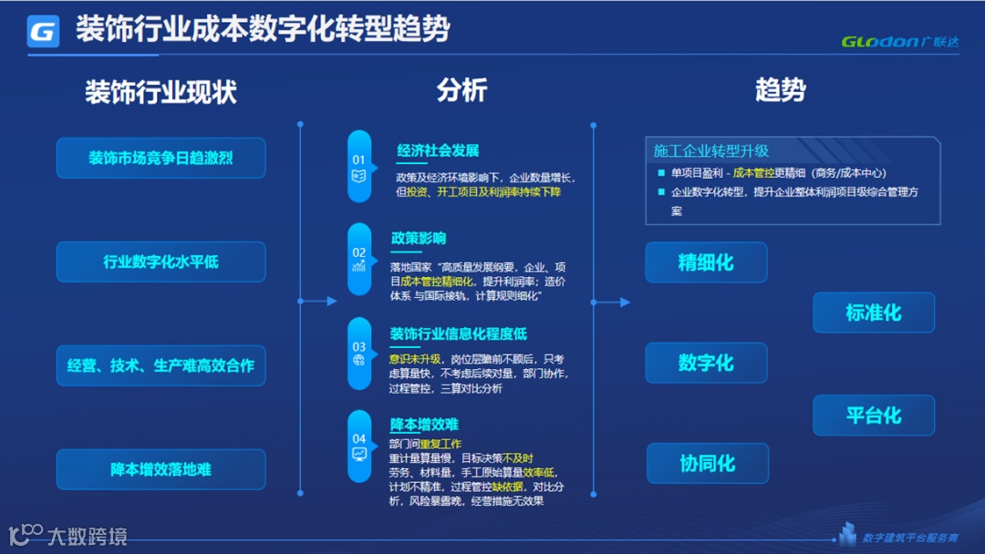 面对日益激烈的市场环境,装饰企业愈发重视成本控制与业务拓展。企业致力于实现造价和成本的精细化、标准化、数字化、平台化、系统化发展,以提升自身竞争力。