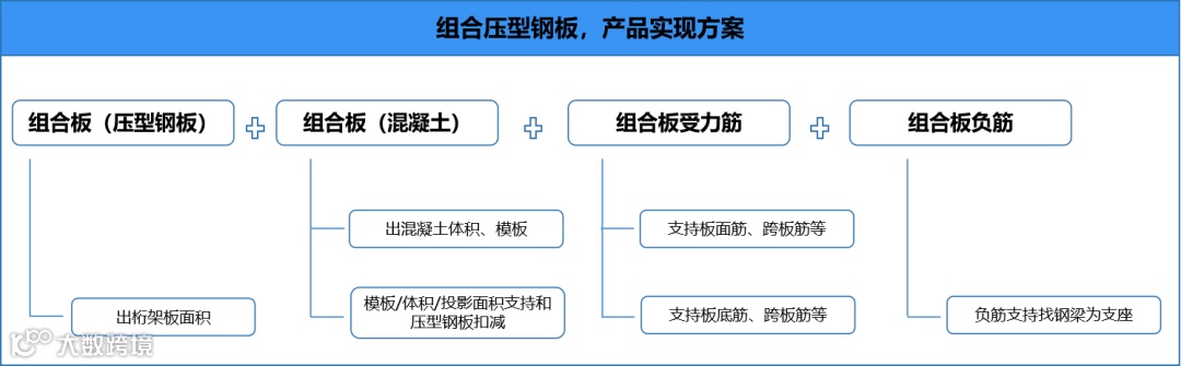 价值2:混凝土板自动扣减压型钢板造型,体积、模板、投影面积等工程量精准计算。