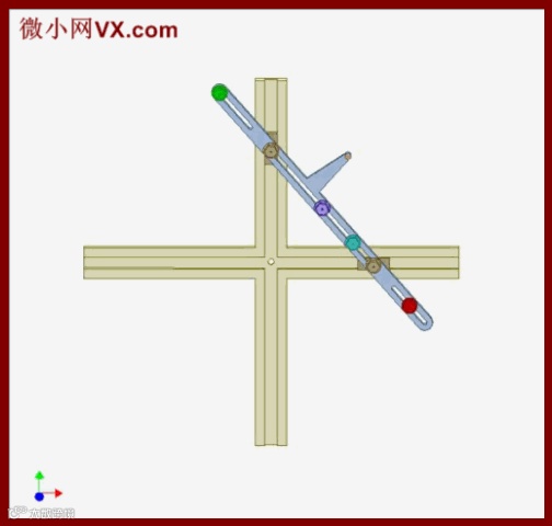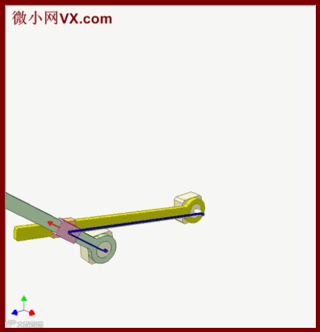 由于橙色长销和紫色、蓝色杆的干扰,蓝色杆没有完全旋转。
