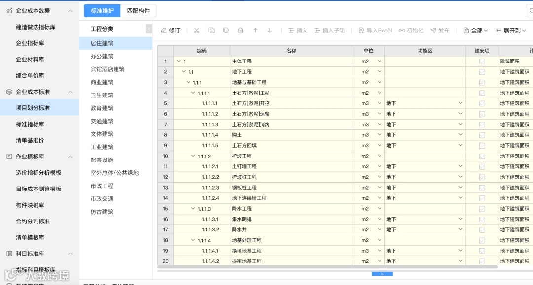 1、集团牵头与广联达共同探讨研究,锚定房建专业,制定初版的成本作业标准和数据标准。