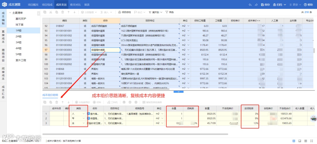 1、通过软件以中标工程量先做一版目标成本测算,判断好整体利润率;