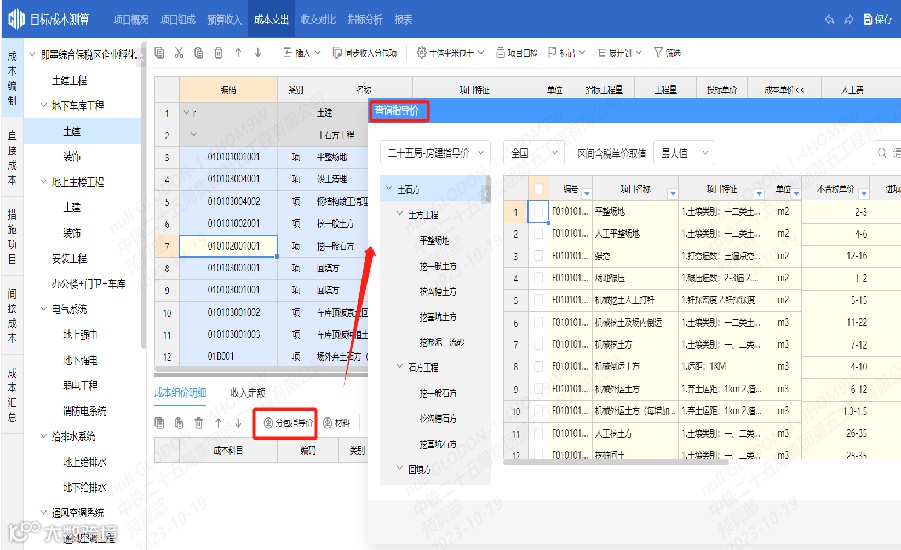 3、新项目目标成本测算时,历史数据的指标可以直接批量载入到新项目中,快速完成新项目的测算。