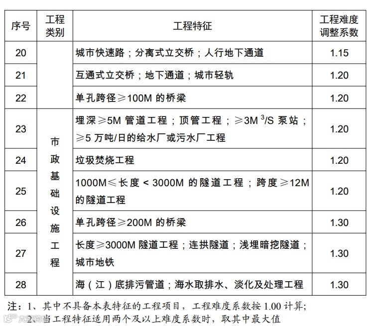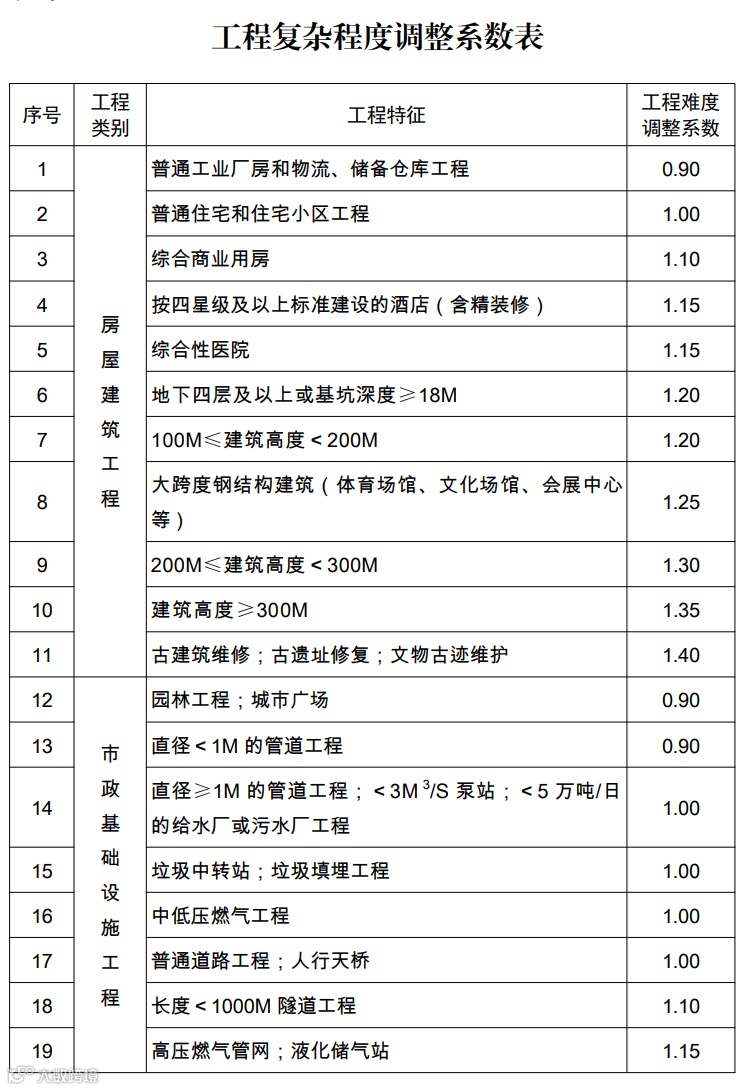 工程复杂程度调整系数表