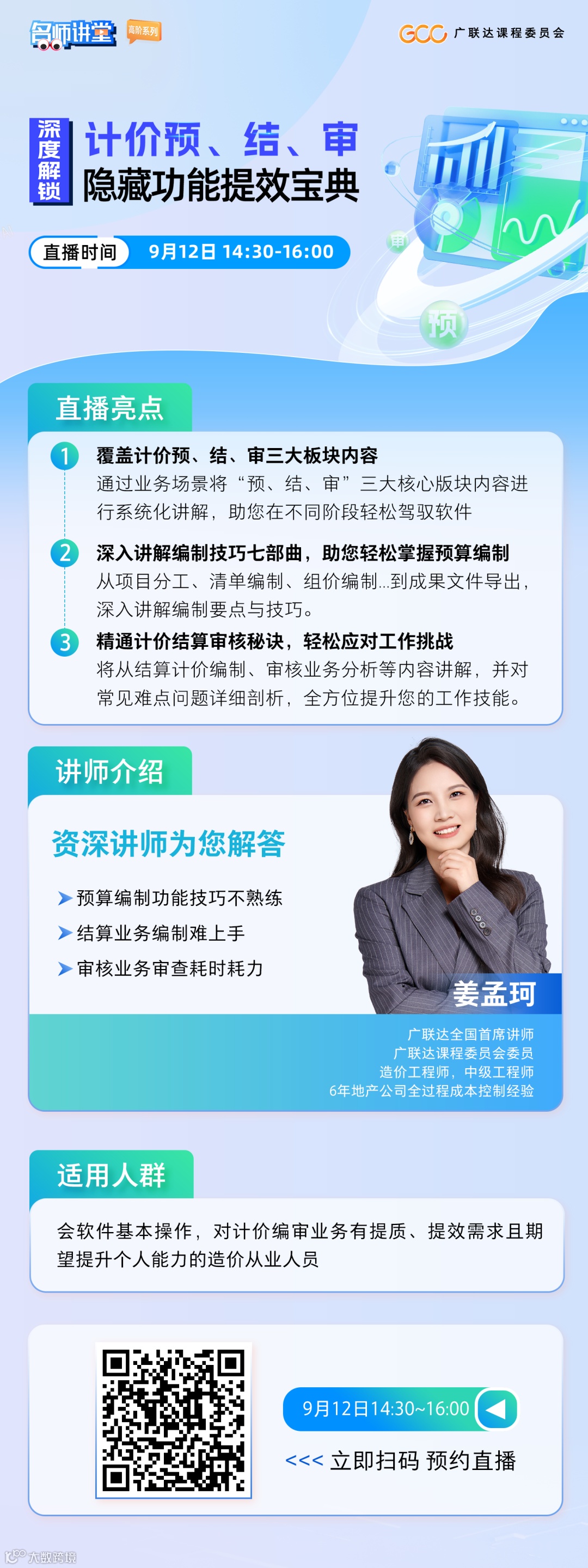 资深讲师为您系统性讲解计价预、结、审内容技巧