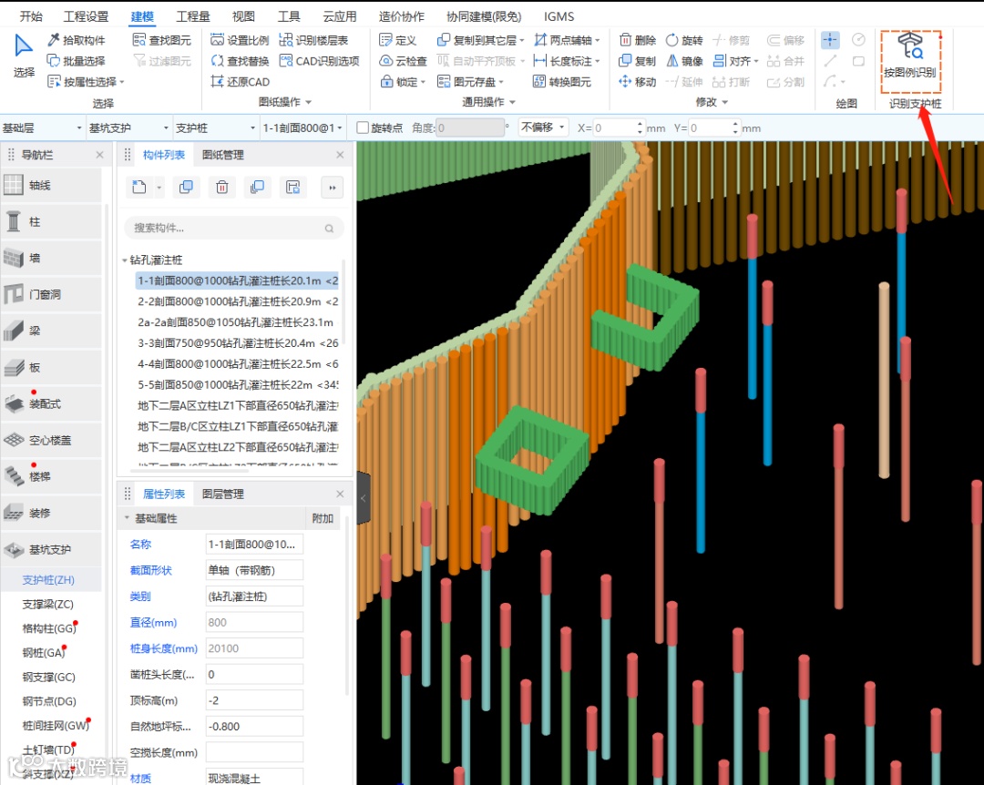 2、支护桩可以一键识别,可以查看钢筋三维,非常方便。