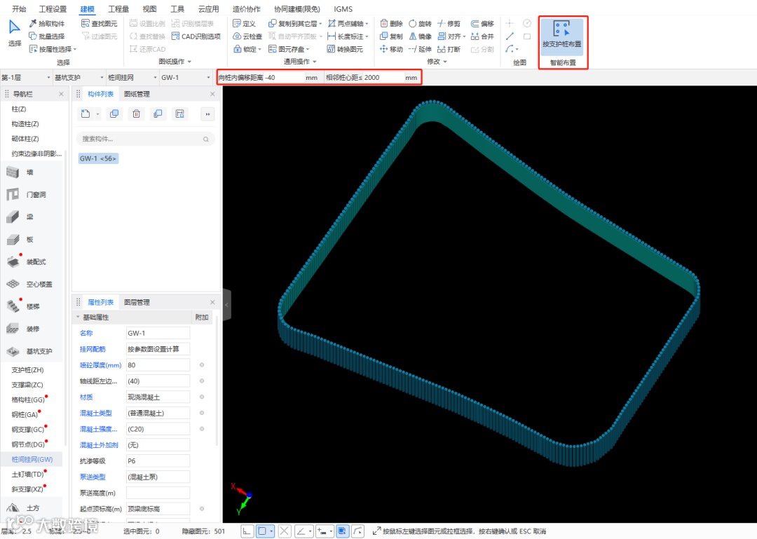 支持智能布置-按支护桩布置快速完成建模,快速计算土建工程量。