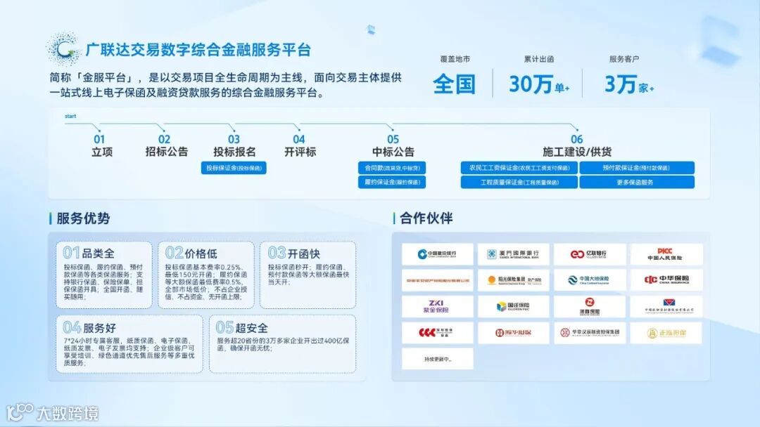 当下,广联达数字交易正以逐年增大的研发投入、日益完善的解决方案,以及始终不变的初心,逐步成为助力公共资源交易行业数字化转型的使能者与领航者。数字交易,美好民生。未来,广联达公共资源交易综合金融服务平台将继续响应国家政策文件,和监管部门、公共资源交易中心共同助力企业降本增效、激发市场活力!
