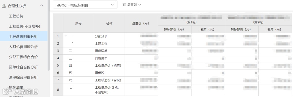 针对人工拼表模式耗时又费力,现在进行分包招采工作时,可应用一键分析功能,将多家投标数据快速导入,自动输出项目数据对比结果,从合理性、符合性、雷同性等多维度、多基准价精细化的对比各家数据,通过不合理项的颜色标识,快速查看差异过高和过低项,差异情况一目了然,分析完成后快速输出了项目相关数据分析报表进行存档,可节省80%以上的工作时间。
