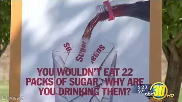 这个瓶子有64克糖。这个牌子每年花25亿还是250亿在广告上,直接导致全美那啥毛病人数超越了多少。