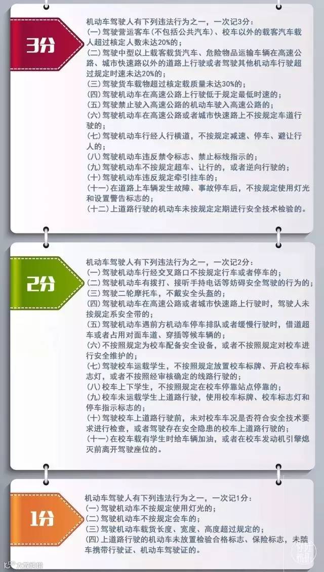 ▶快来看!最新的道路交通安全违法行为记分分值