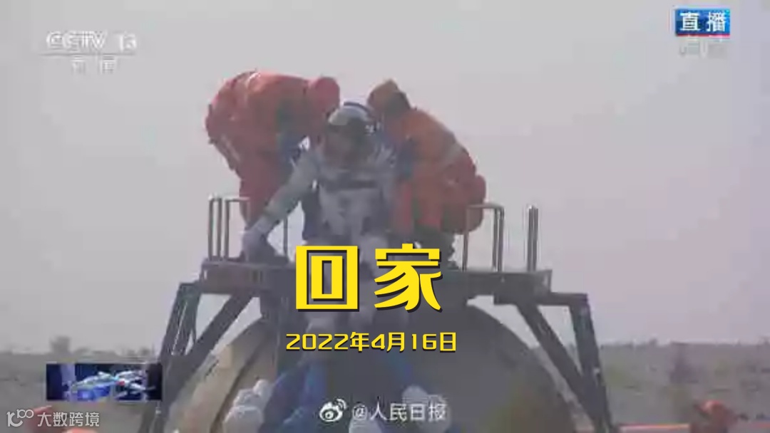 4月16日上午,神舟十三号载人飞船返回舱在东风着陆场预定区域成功着陆,载人飞行任务圆满成功。
