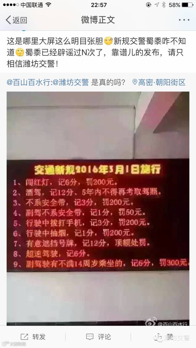 蜀黍要说:《交通新规2016年3月1日施行》的消息,是假的!!