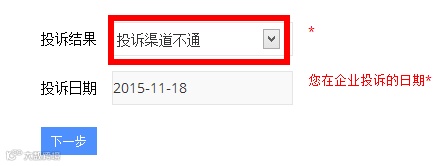 投诉结果选择“投诉渠道不通”,日期随便填
