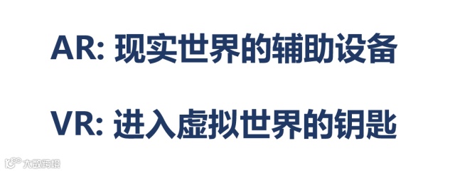 简单来说,虚拟现实(VR),看到的场景和人物全是假的,是把你的意识代入一个虚拟的世界。增强现实(AR),看到的场景和人物一部分是真一部分是假,是把虚拟的信息带入到现实世界中。