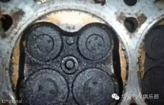 积碳堆积在燃烧室内,造成燃烧室容积变小,压缩比提高,各缸做功不均,致使发动机发生爆震。