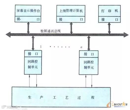 分布式控制系统(Distributed Control System,简称DCS)主要是采用控制分散、操作和管理集中的设计思想,采用多层分级、合作自治的结构形式,其主要特征是集中管理和分散控制。如图2是DCS系统的逻辑框图: