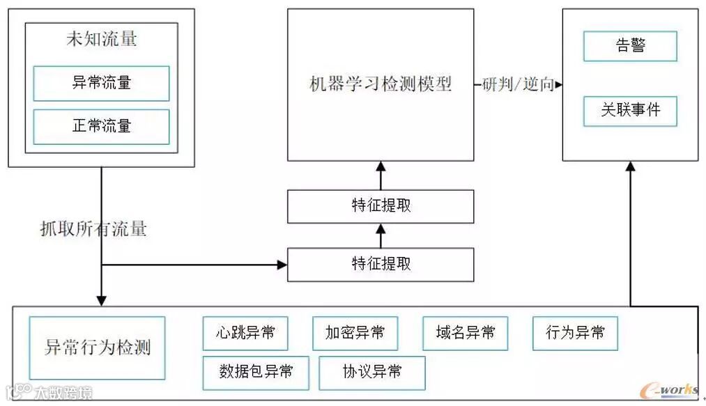 在具备持续性探测能力的前提下,可以通过监测分析数据的方式来主动发现网络中的异常行为,通过保护正确数据、监测异常行为的方式,进行主动报警,协助防护设备(智慧防火墙、主机安全防护设备)进行主动拦截和阻断。如图7所示,主动判断并报警流程: