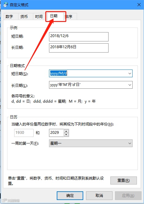 在弹出的页面上选择【日期】选项卡