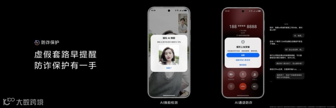 HUAWEI Pura 80系列也带来全面的安全守护。AI防窥保护 ,在亮屏解锁状态下提示旁人注视风险,避免敏感信息泄露;与陌生人通话时,能进行通话防诈检测,虚假套路早提醒,帮助消费者鉴别欺诈、伪造内容;在微信、QQ、畅连视频通话时,通过端侧大模型辅助推理,实时提醒人脸伪造并提示风险。HUAWEI Pura 80 Pro、HUAWEI Pura 80 Pro+、HUAWEI Pura 80 Ultra还能识别隐私场景,智能开启AI静谧通话,无论是在车内、还是身处电梯,都能有效防止通话漏音,私享安心。