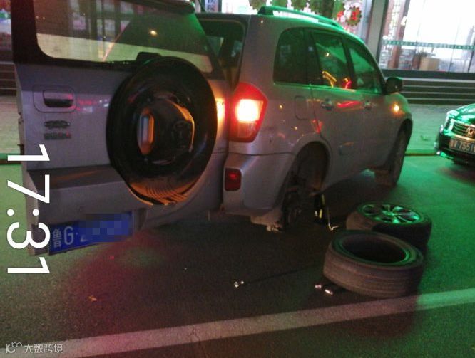 救援人员熟练操作,认真为客户汽车更换轮胎。客户对救援非常满意。