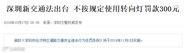 除了上海,其他城市也陆续严打关于转向灯的使用。去年11月,深圳正式实施全新修改的《深圳经济特区道路交通安全违法行为处罚条例》,即车友们口中的全国“最严”交规。其中第十三条第五款规定: