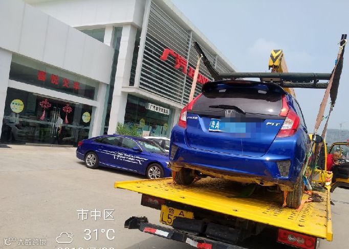 成功将客户汽车移出困境,拖车前往汽车4S店。
