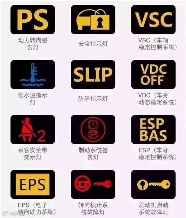 下面这几个指示灯标志