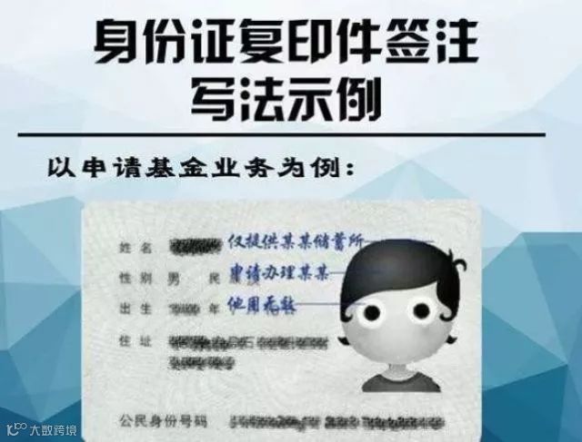标注要注明身份证的用途,仅可使用一次,再复印无效等语句,一般办理时可写“本复印件仅用于办理xx使用,再复印无效。”