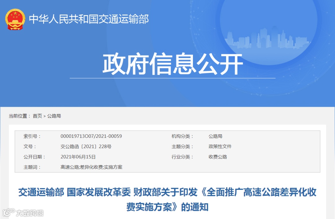 导读:近日交通运输部、国家发展改革委、财政部三部门发布关于印发《全面推广高速公路差异化收费实施方案》的通知本次方案