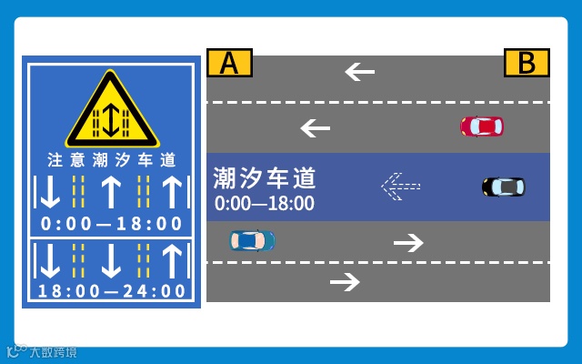 潮汐车道是指根据早晚交通流量的不同情况,对有条件的道路设置一个或多个车辆行驶方向随时间变化的车道。