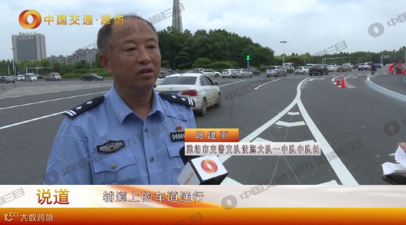 陈队长:主道上的机非隔离绿化带,如果说中间有开口的,有一个两个甚至有三个的开口的情况,我们也随后相应的完善这方面的标志。在主道同行的车辆,当看到这面标志,告诉你在路口上告诉你一次一级提示 ,前方路口右转车辆驶入辅道。而当你错过这个机会后,在下一个有开口的地方,我们还会设立一个标志,右转车辆进入辅道。如果还有一个的话,我们会做三级提示。根据不同路段的现状,做一块标志的提示。