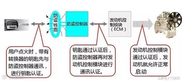 只有钥匙上的ID和汽车系统内记录的ID一致时,汽车才可以被启动。相反,如果识别为错误ID,汽车就会马上切断给发动机供电、供油的一切设备,使发动机无法启动。