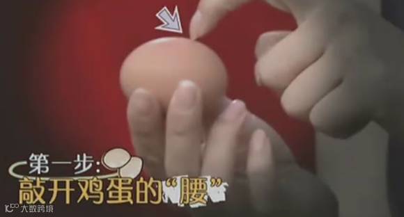 把鸡蛋中间的地方往桌面上一磕,