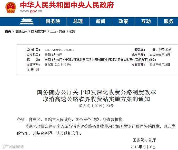 近日,国务院办公厅印发《深化收费公路制度改革取消高速公路省界收费站实施方案》,提出力争今年底前基本取消全国高速公路省界收费站,各省(区、市)高速公路入口车辆使用ETC比例达到90%以上,实现不停车快捷收费。