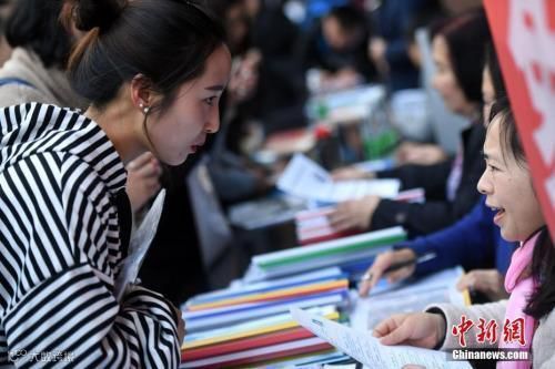 资料图:招聘会现场在洽谈的双方。中新社记者 李进红 摄