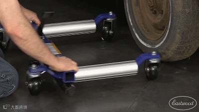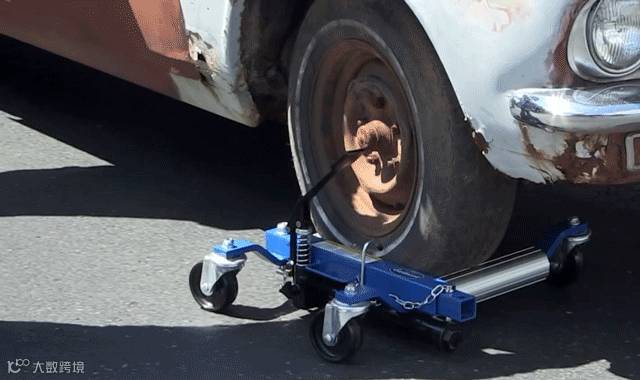 使用时,只需将两侧液压臂展开,固定液压阀门之后,推入需要移动的汽车轮胎外侧即可。。。