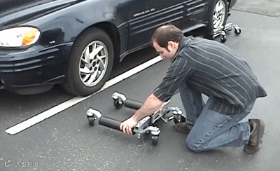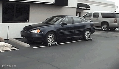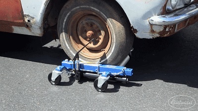 国外一家公司就脑洞大开的发明了一款移车神器,只需把它放在汽车轮胎底部,就能像“大力士”一样,轻松把沉重的汽车推走。。。