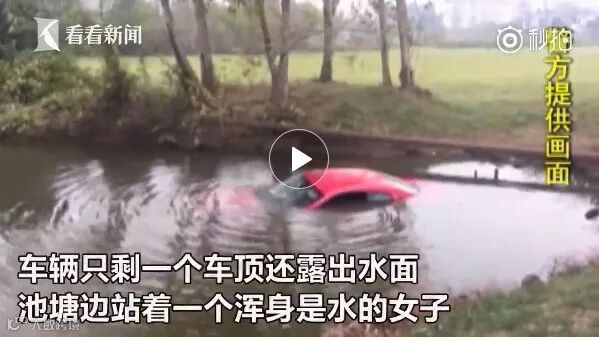 近日,南京民警巡逻时发现路边池塘里有一辆红色汽车泡在水中,车辆只剩一个车顶露出水面,池塘边站着一个浑身是水的女子。经查,原来女子在开车经过转弯处时低头玩手机回复微信,等反应过来的时候,玛莎拉蒂已经压过路边的绿化树,一头冲进了路边的水塘里。幸亏水不深,女子也没有受伤。