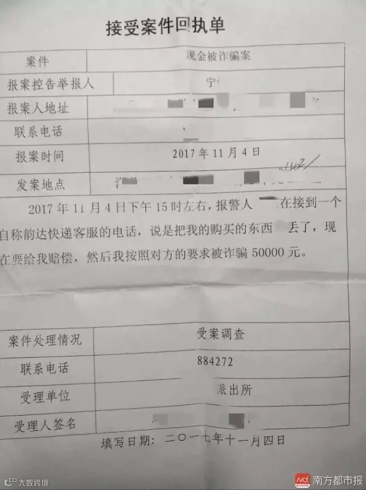 11月4日,湖北武汉的宁女士接到一个自称快递公司的电话,原以为包裹被弄丢可获得50元赔偿,不想一年攒下的5万元全被骗走了,还有8万元被莫名购买了基金,现遭到冻结。