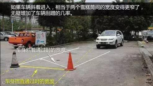为什么需要摆直车身呢,而不能斜着通过呢?其实道理很简单,如果宽度可以看做是一个直角三角形的斜边,如果斜着进入的话,车辆可通过的宽度由直角三角形的斜边变成了直角边,明显车辆可通过的宽缩小,这样碰擦的几率就更大了。