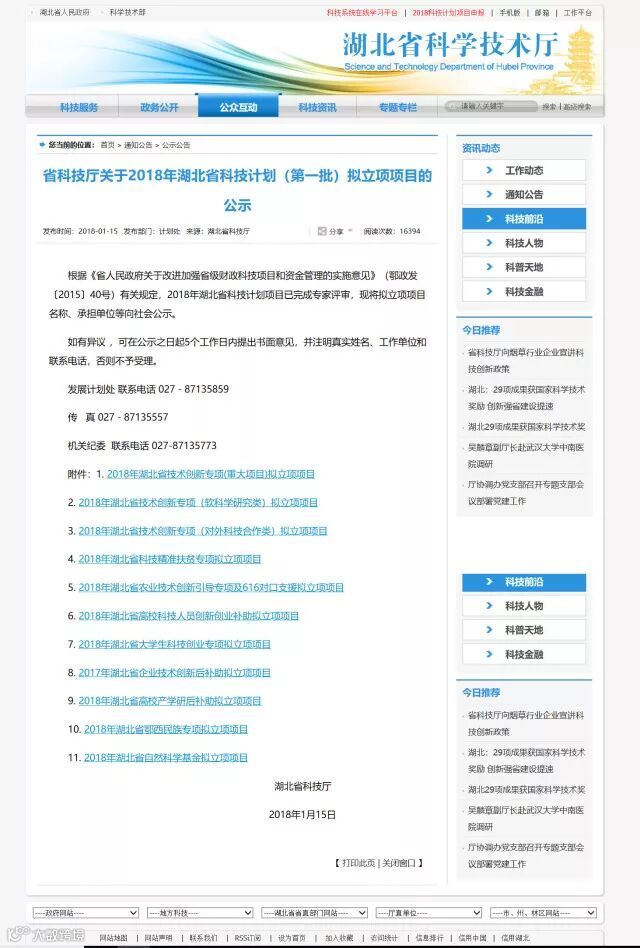 楚塞三湘接,荆门九派通。1月15日,湖北省科技厅通过项目征集、项目初审、复审、专家评审等环节,历时三个半月,于昨日公示了入选2018年湖北省大学生科技创业专项项目。软通动力-荆门九派通众创空间入孵企业均成功立项,分别为: