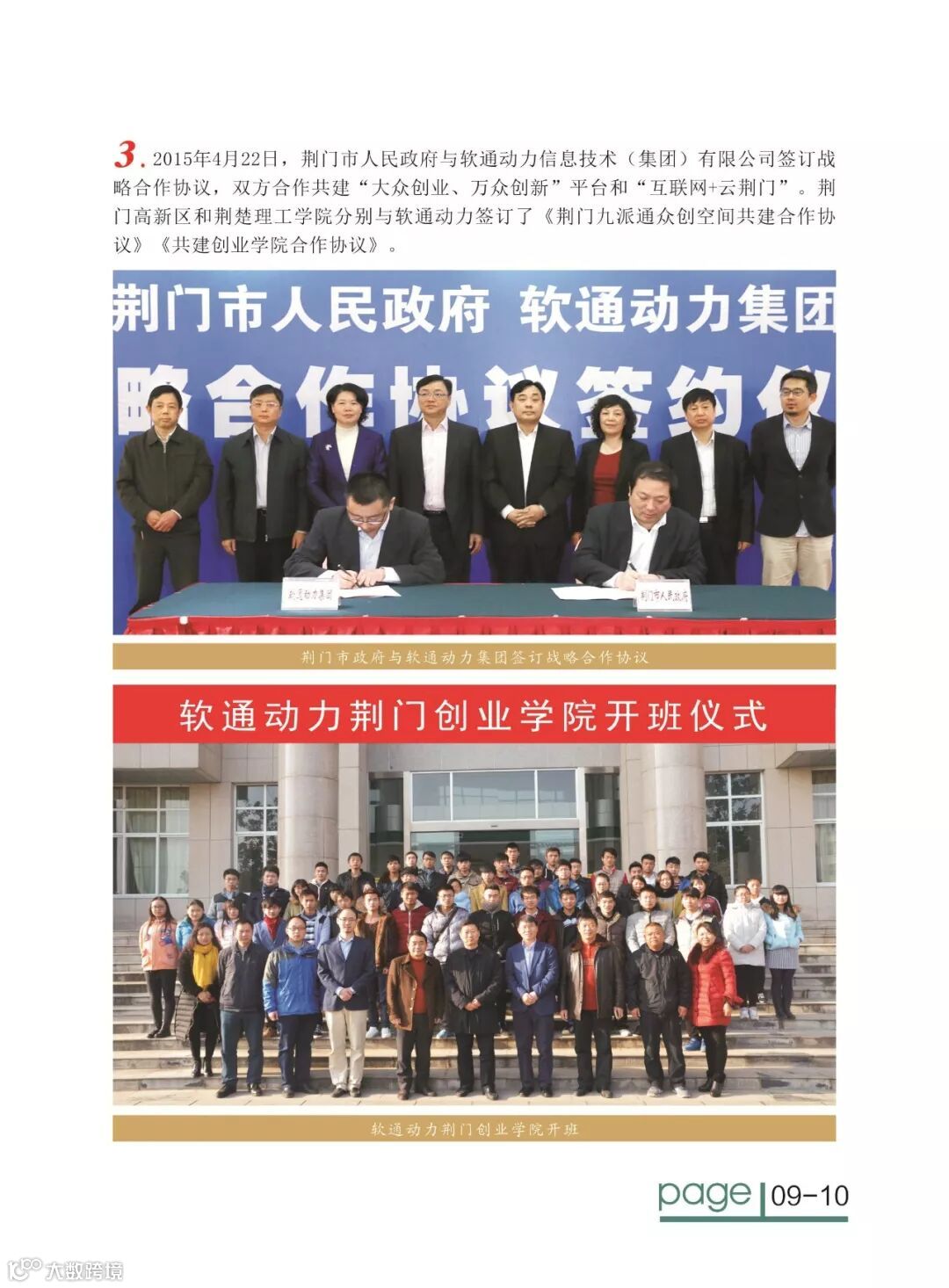 平台,激发创新创业的活力,打通荆门产业“政-产-学-研-金”完整链条,构建创新创业生态系统,先后获评省级、国家级众创空间、省级小型微型企业创业创新示范基地、省级双创工作先进集体和第三批湖北省知识产权双创服务基地,并在互联网+、智慧城市领域全面开展战略合作,共同构建荆门大众创业、万众创新的新格局,为本地产业升级转型提供发展动力和强力支撑。
