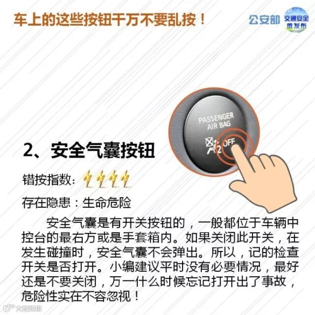 而大家如果买车不仔细看说明的话,有些按钮按错了会造成一定的安全隐患,甚至会威胁人的生命的,那么什么按钮不能随便按呢,带大家认识一下吧。