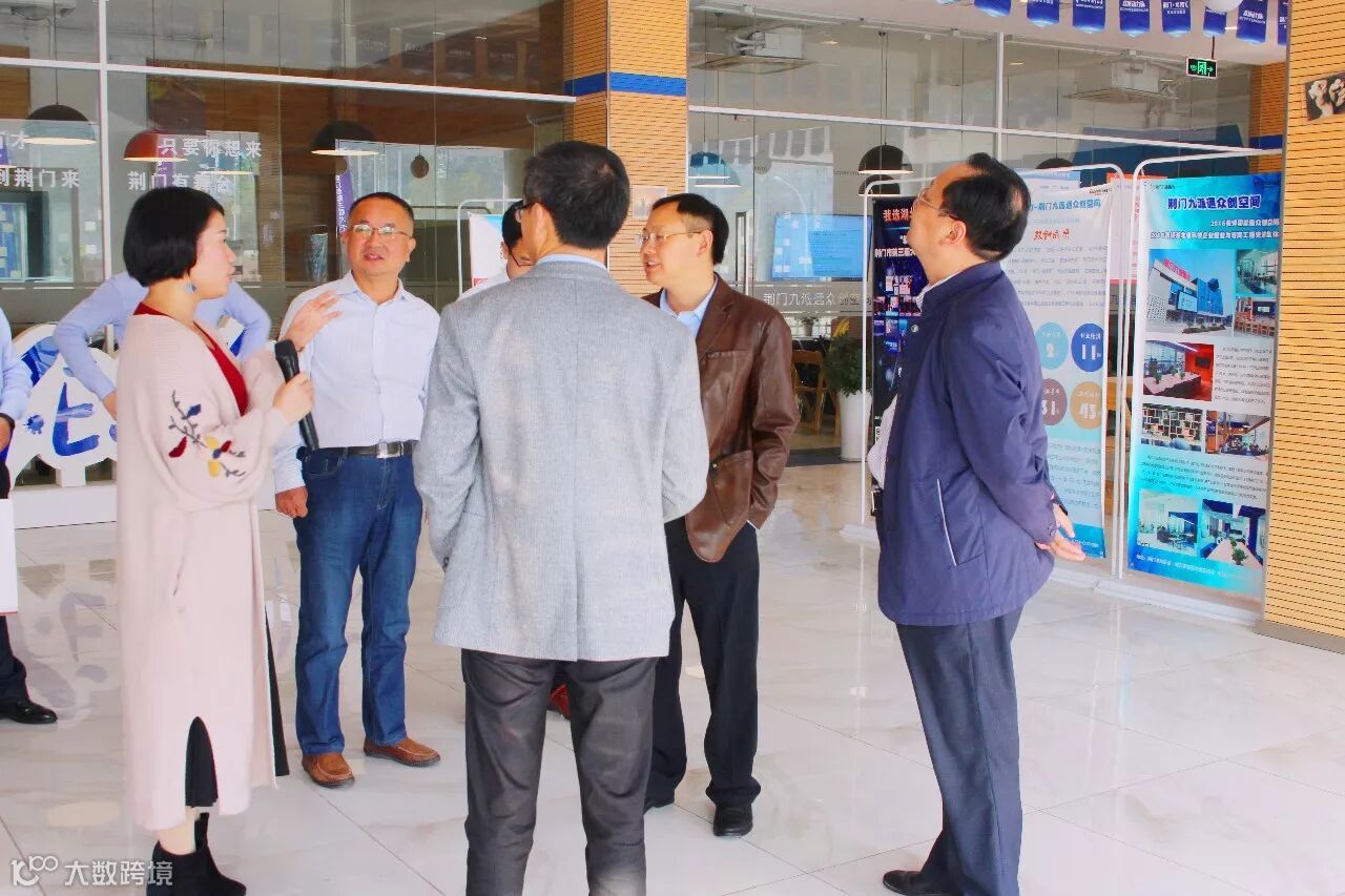 11月8日,由武穴市市委组织部常务副部长梅志新、市委人才办主任王学平、市人社局局长陶玉平、市科技局局长程小斌、市商务局局长姜锡涛等人组成武穴市考察团到荆门九派通众创空间考察学习人才创新创业平台和服务超市建设工作。