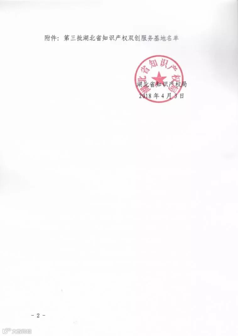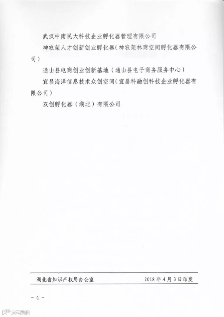 湖北省知识产权局鄂知发【2018】7号文件发布了关于确定第三批湖北省知识产权双创服务基地名单的通知,荆门九派通众创空间成功入选。